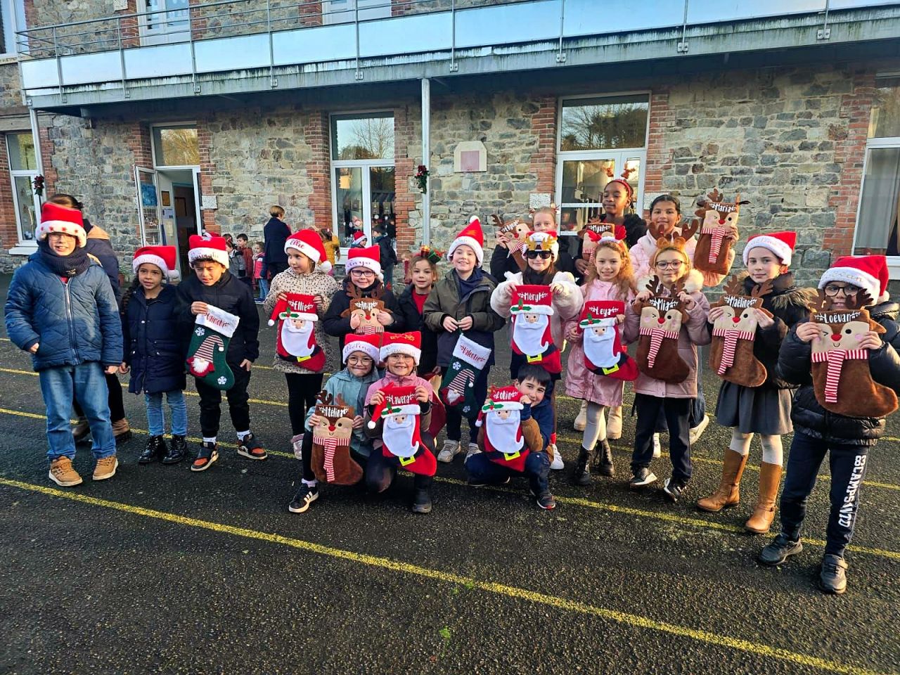 Vendredi 19 décembre à 16h, nous nous sommes tous retrouvés sur la cour de l’école pour notre tradition de Noël à savoir les chants offerts aux personnes présentes, la remise des cadeaux confectionnés par les enfants et le goûter partagé.